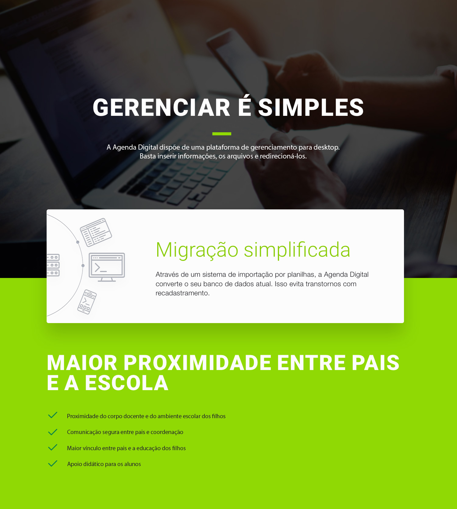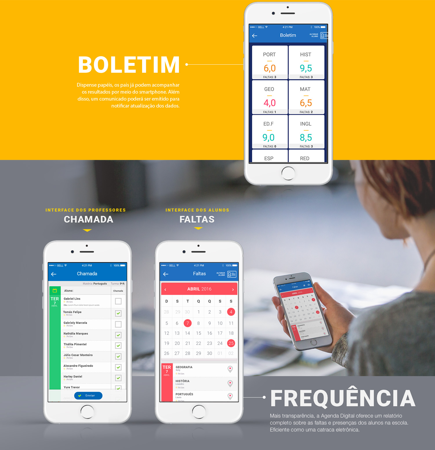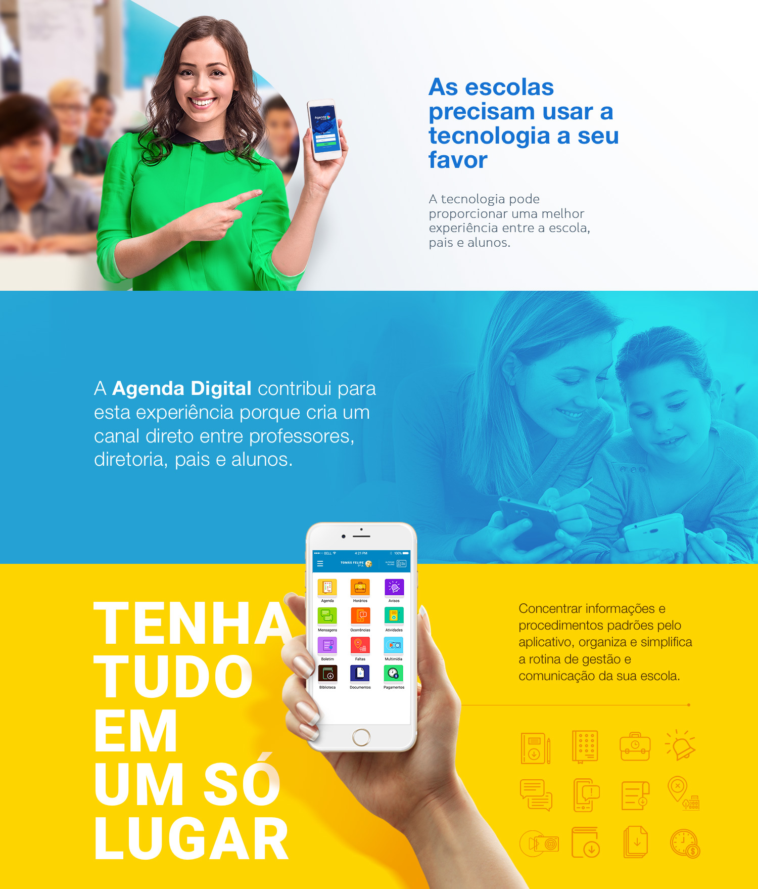A Agenda Digital contribui para esta experiência porque cria um canal direto entre professores, diretoria, pais e alunos, concentrando todas informações e procedimentos padrões pelo aplicativo, organizando e simplificando a rotina de gestão e comunicação da sua escola.